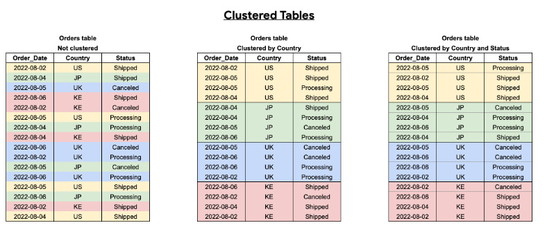 Improved Query Performance: Clustering helps improve query performance by allowing BigQuery to skip over irrelevant data blocks.